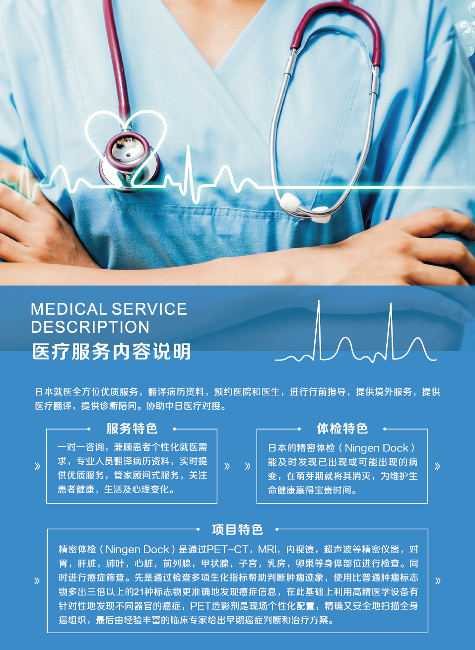 在中日两国医疗界工作经验10年以上的资深医疗顾问,以及专业医疗翻译为您精诚服务